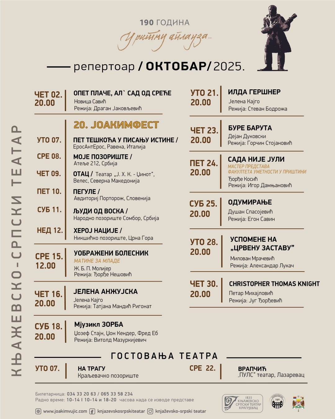 Све податке о догађајима и ближе информације у вези са догађајима можете добити преко контакта институција организатора који се налазе на сајту.