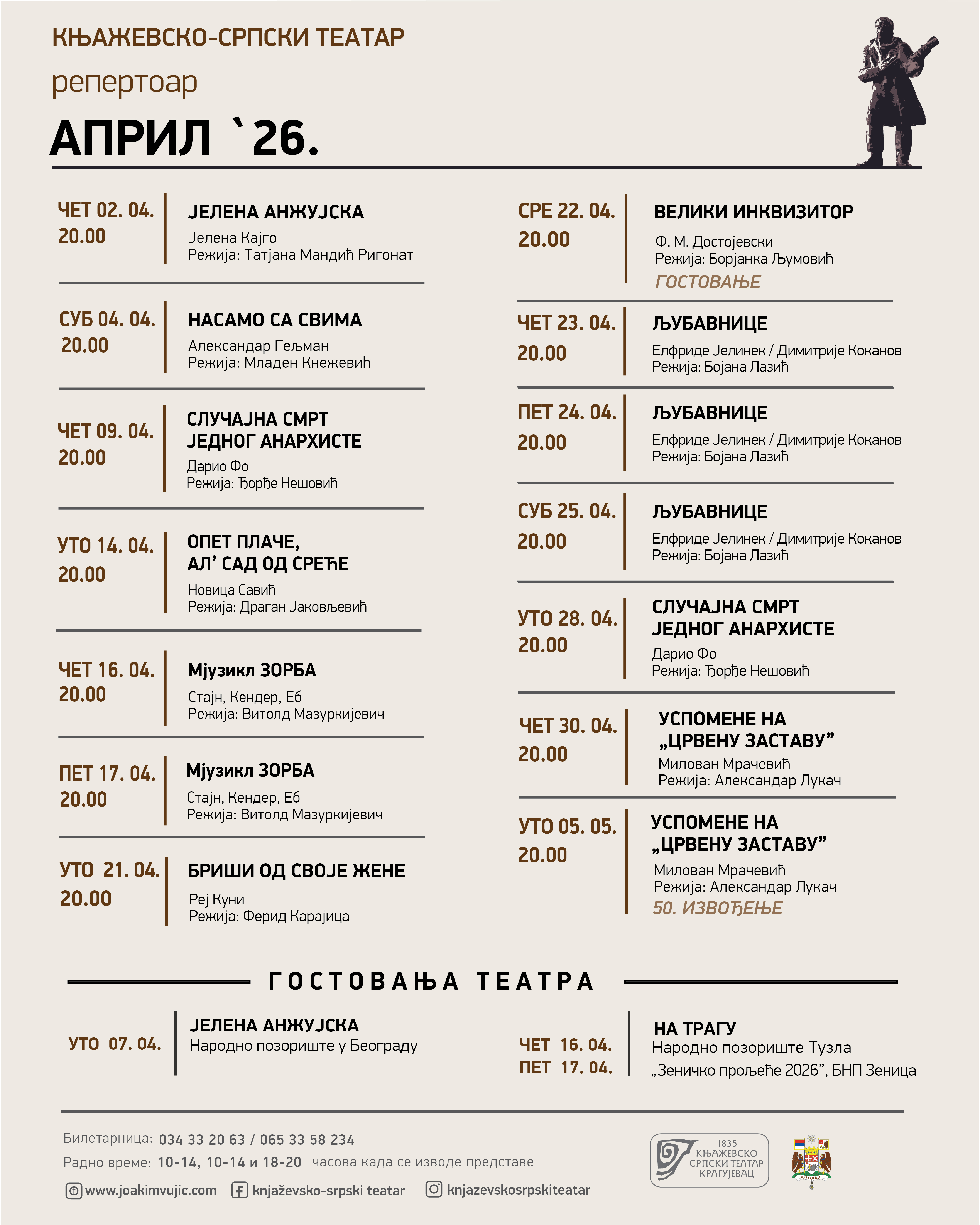Све податке о догађајима и ближе информације у вези са догађајима можете добити преко контакта институција организатора који се налазе на сајту.
